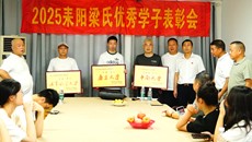 又是一个丰收年,又到金榜题名时。8 月 15 日上午,湖南耒阳梁氏理事会召开 2025 年优秀学子表彰会,对 2025 年度 9 名高考优秀学子进行表彰奖励,受奖学子及家长和耒阳梁氏宗亲理事参加了此次会议。